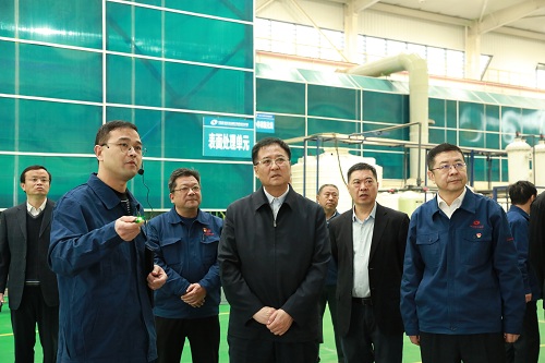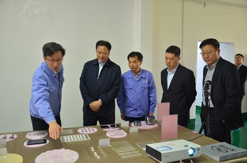 圖為焦開河在光電集團新華光公司調研