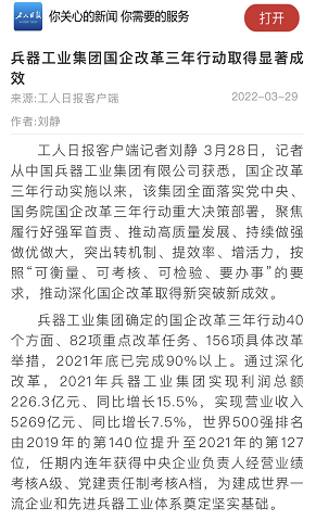 兵器工業(yè)集團國企改革三年行動工作成效引發(fā)廣泛關(guān)注丨國企改革看兵器 |